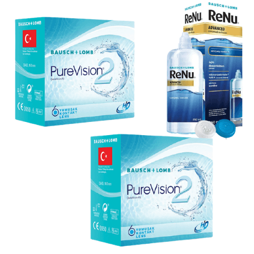 Purevision 2 hd 2 kutu kampanyalı lensler, 6 aylık lens ihtiyacını en uygun fiyatla sipariş vermek isteyenler için lens paketi.